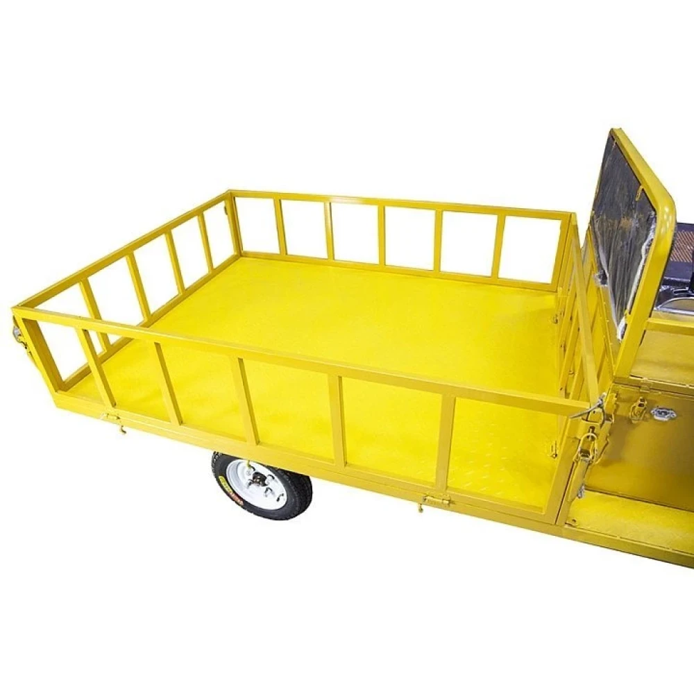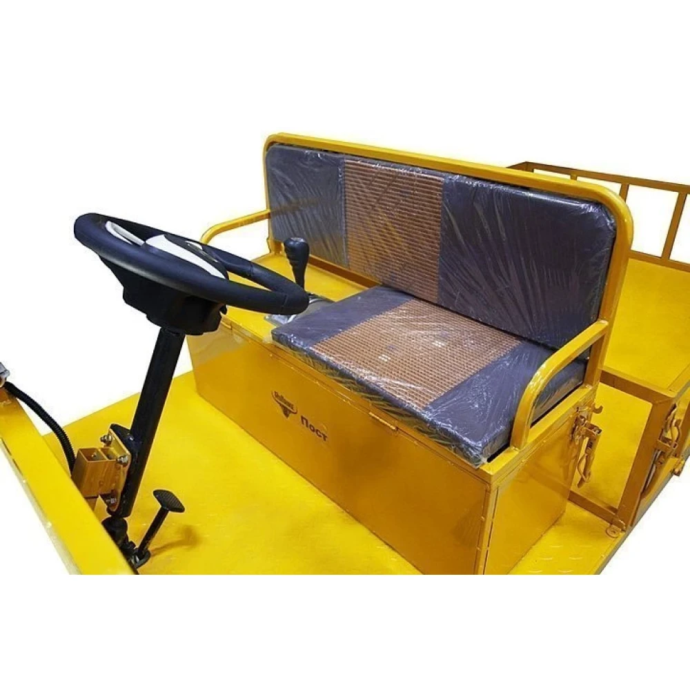 Кузов тележки сделан из высокопрочной стали и имеет внушительные размеры 1560:1310:350. Управление тележкой осуществляется при помощи автомобильного руля, педалей газа и тормоза, рычага переключения скоростных режимов.