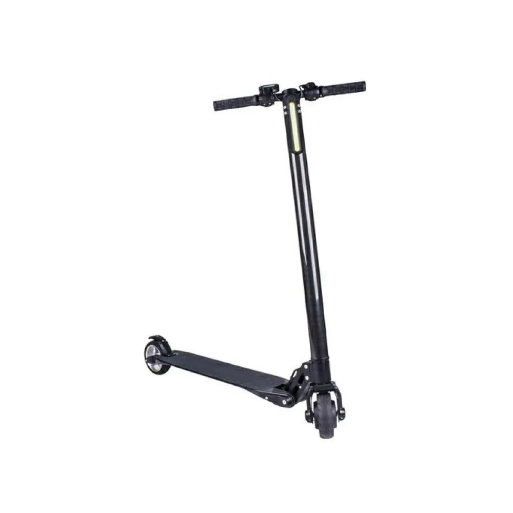 Техника грузоподъемностью 100 кг оснащена фирменным электромотором мощностью 250 Вт и емкой батареей. Максимально допустимая производителем скорость и пробег на одной подзарядке составляют 25 км/час и 25 км пути. Электросамокат изготовлен из алюминия, легкий по весу. С учетом системы складывания модель удобная для путешествий и продолжительном отдыхе на природе.