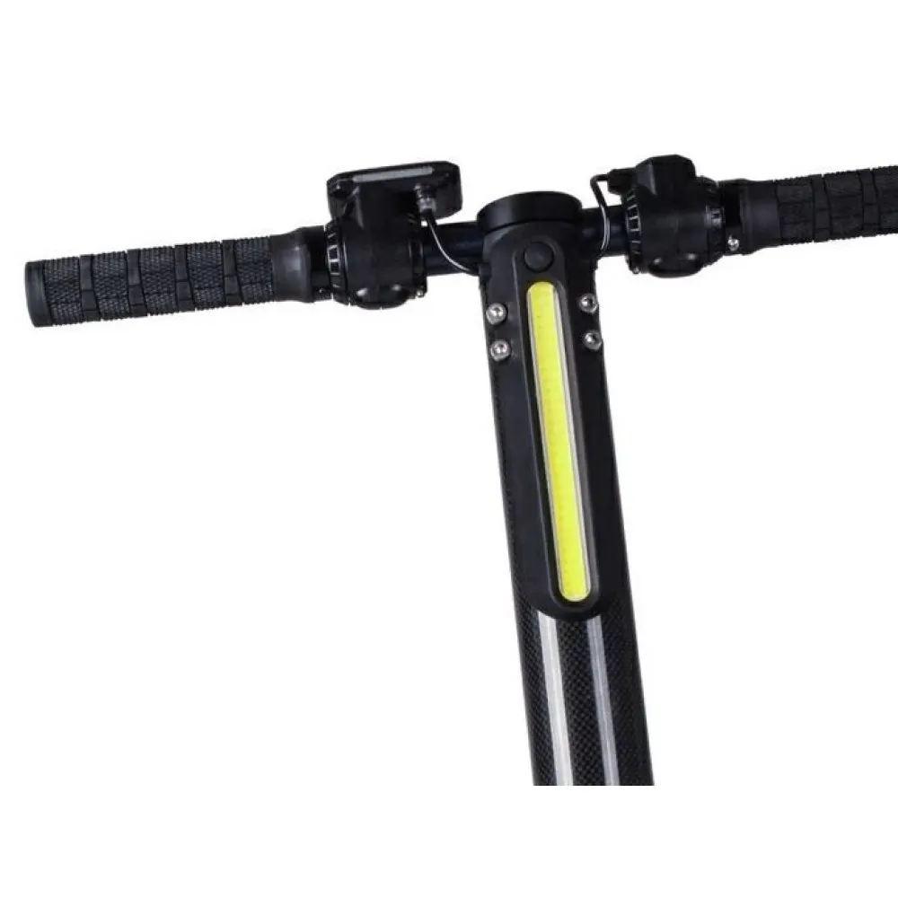 Широкая нескользящая дека, удобная рулевая стойка – комфортные, не допускают усталости, снимают нагрузку на позвоночник. Анатомические грипсы не провоцируют форс-мажора и соскальзывания рук. Информационный дисплей позволяет держать под контролем важные технические показатели, не допускает рисков разрядки батареи. 5,5-дюймовая колесная часть накатистая и мало стираемая. Наличие переднего освещения допускает езду в вечернее время и ненастье.