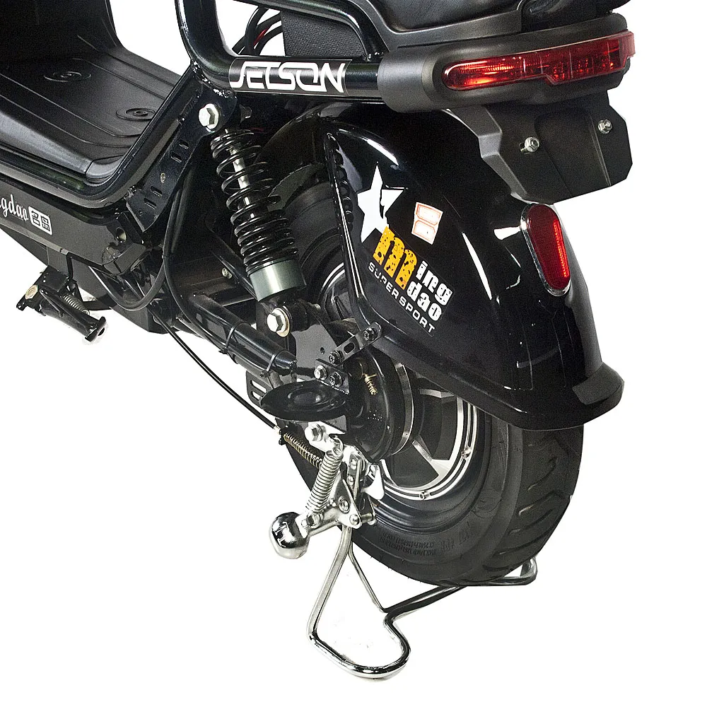 Удобная замена общественному транспорту и личному автомобилю – электроскутер GM-60 от компании Jetson. Сочетая в себе современный дизайн, динамику и комфорт, этот скутер способен проехать до 80 километров без подзарядки благодаря своему ёмкому свинцовому аккумулятору – целых 20 Ач. Батарею можно легко снять и заряжать там, где вам удобно. 450-Ваттный электромотор способен разогнать скутер до 50 км/ч даже при наибольшей возможной нагрузке – 180 килограмм. Мягкое, широкое и прочное сидение из эко-кожи с прямой посадкой делает самые долгие поездки на электроскутере приятными как для водителя, так и для пассажира. Тормоза скутера – барабанного типа и спереди, и сзади – срабатывают эффективно и без лишних рывков. Мощная LED-фара и яркие габаритные огни делают передвижение на скутере ночью безопасным. Управление движением, фарами и скоростными передачами осуществляется с помощью кнопок и ручек на руле. Высокопрофильные, 16-дюймовые колёса спокойно проезжают через любые препятствия на городских дорогах. В комплекте Jetson GM-60 идут корзина для перевозки вещей, пассажирское седло и сигнализация.
