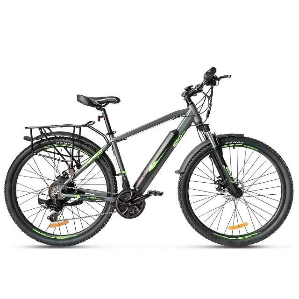 Eltreco Ultra Trend UP! – усовершенствованная модель велогибрида Ultra Trend. Лёгкая и прочная алюминиевая рама, к которой прикрепляется съёмная батарея, 27,5-дюймовые манёвренные колёса и практичная 7-скоростная трансмиссия делают управление велосипедом максимально простым и комфортным. За остановку велогибрида Ultra Trend UP! Отвечают два дисковых механических тормоза. Для нетрудного преодоления неровностей на новую модель Eltreco установлена амортизационная вилка с опцией блокировки. Приятным бонусом к качественной обвеске будут установленные крылья, превосходно защищающие от грязи и воды, и багажник, на котором удобно перевозить объёмные грузы.