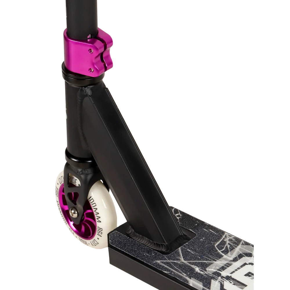 Стальная рулевая стойка высотой 560 мм беспрекословно слушается пользователя. Нескользящая дека с брендовой шкуркой исключает случайное соскальзывание ног и падение. Прорезиненные грипсы удлиненной формы не провоцируют запотевание рук и другие непредвиденные действия, увеличивают степень безопасности. Максимальный разгон обеспечен благодаря оснащенности тс 100 мм колесами и инновационными подшипниками.
