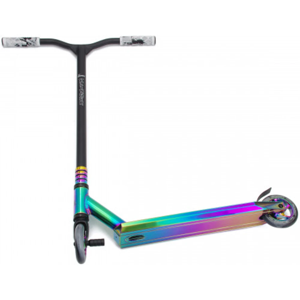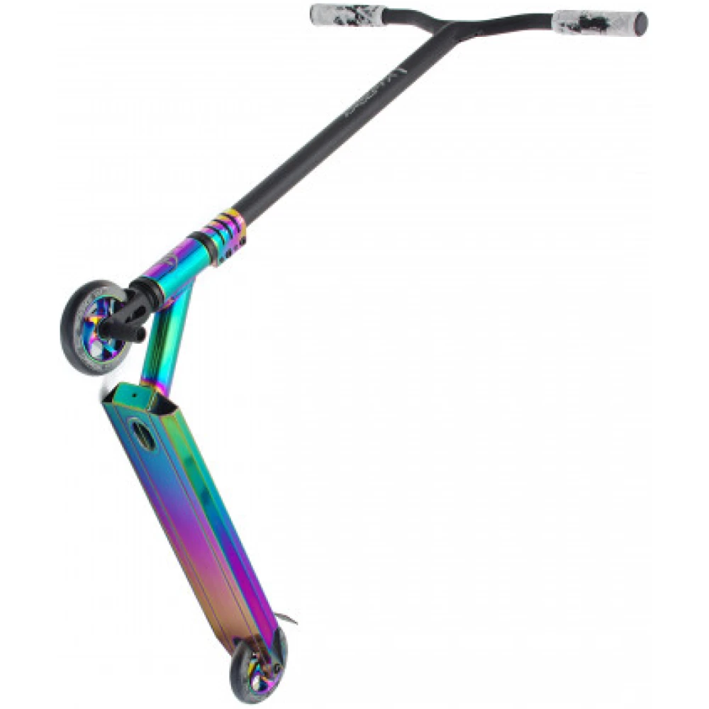Компрессия HIC на самокате надежно зафиксирована зажимами из четырёх болтов. Накладки на руле имеют ребристую поверхность для лучшего сцепления с руками райдера. Высота самоката выполнена с учетом пожеланий пользователей. Брендовые подшипники типа ABEC-9 обеспечивают быстрый разгон.