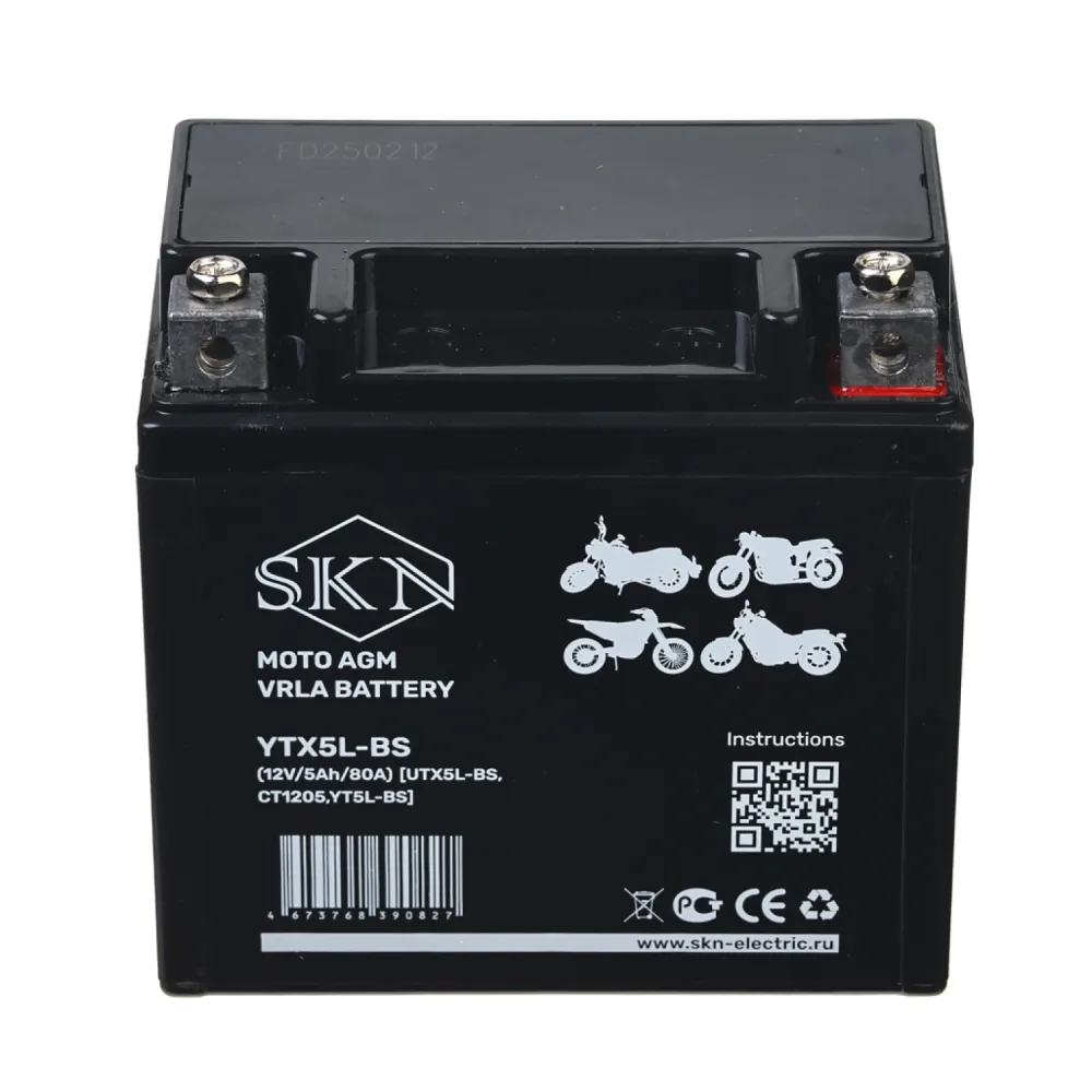 Аккумулятор стартерный для мототехники SKN YTX5L-BS (12V/5Ah/80A) [UTX5L-BS, CT1205, YT5L-BS]